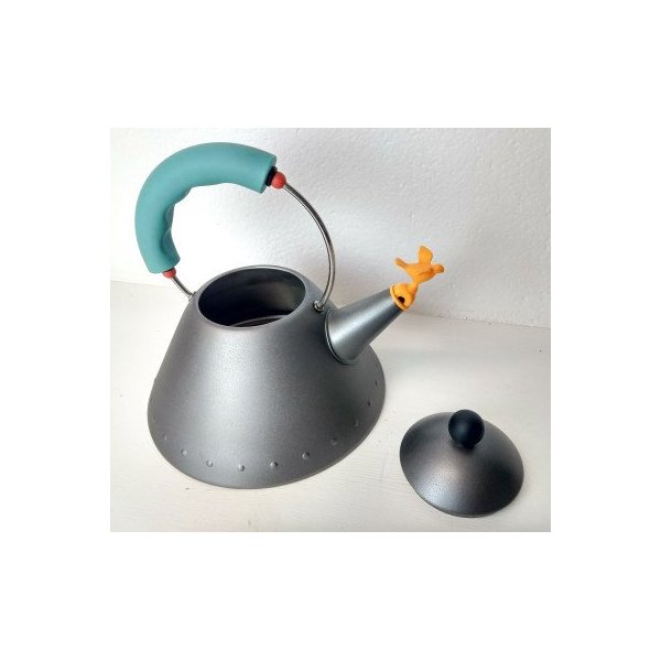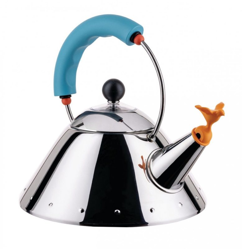 ALESSI – “9093” Bollitore con fischietto a forma di uccellino, in acciaio inox 18/10 e resina termoplastica, fondo in acciaio magnetico, adatto ai fornelli a induzione, *1 litro*, *Giallo* o *Azzurro* – Azzurro