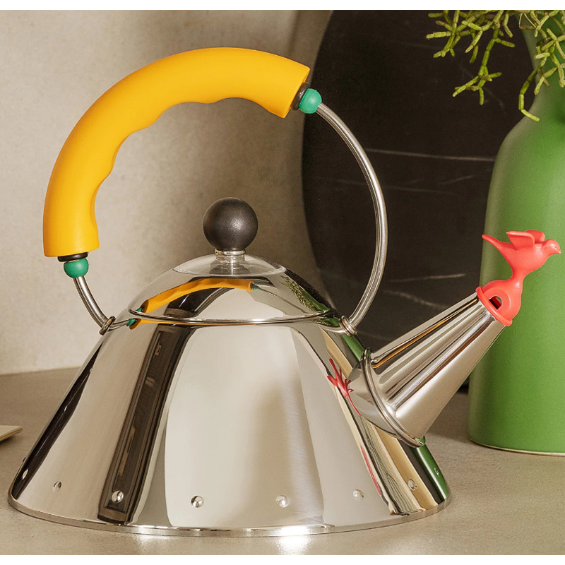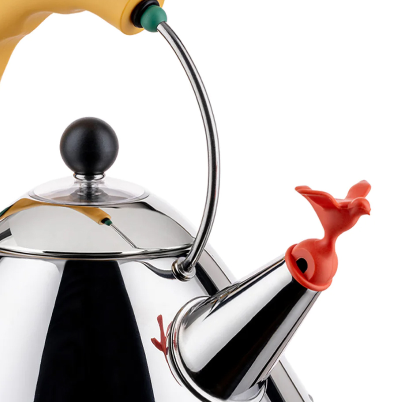ALESSI – “9093” Bollitore con fischietto a forma di uccellino, in acciaio inox 18/10 e resina termoplastica, fondo in acciaio magnetico, adatto ai fornelli a induzione, *1 litro*, *Giallo* o *Azzurro* – Giallo