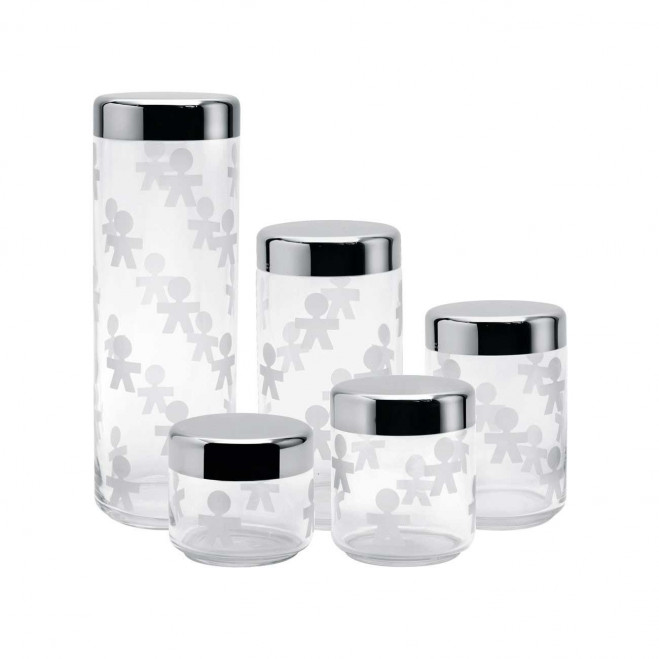 ALESSI – “GIROTONDO” Barattolo ermetico in vetro serigrafato con coperchio in acciaio inox 18/10, disponibile in 3 capacità, *75 cl*, *1 litro*, *1,5 litri* – 75 cl