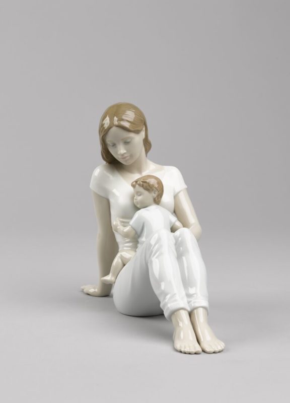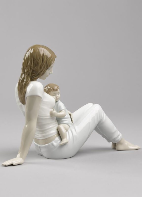 “L’amore di una madre è una figura in porcellana che mette in scena il concetto universale di maternità, visto con un’interpretazione attuale, giovane nella sua quotidianeità, con un vestito secondo una nuova generazione di madri in una posa che riflette l’energia senza perdere l’intimità del momento. Ci trasporta in un sentimento ancestrale in cui una madre contempla il figlio che riposa su di lei. Con finitura in porcellana e colori tenui. Esiste in porcellana bianca senza alcun colore e con dettagli lucidi. È un regalo perfetto per la festa della mamma o per la nascita di un figlio. Realizzato a Valencia, in Spagna.”