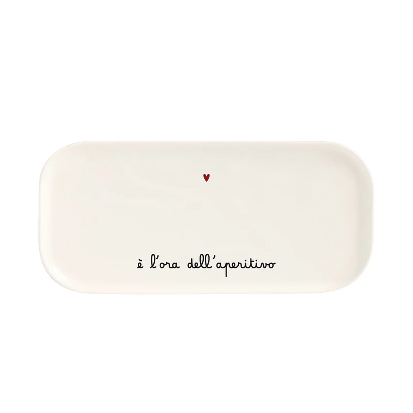 Vassoio rettangolare in gres decoro E’ l’ora dell’aperitivo 31.8×15 cm