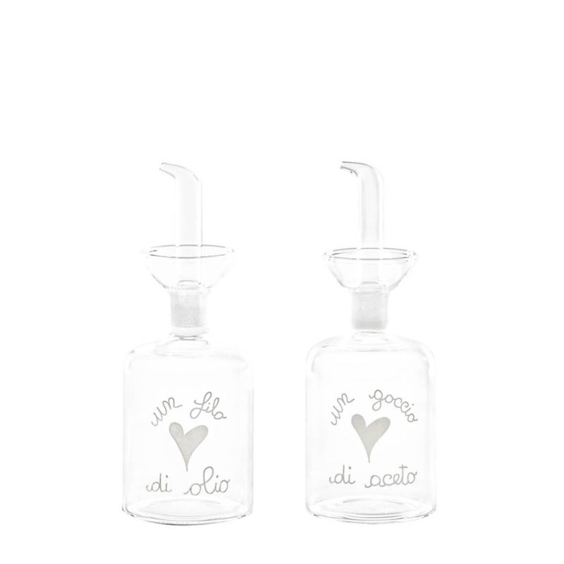 SIMPLE DAY – “UN FILO D’OLIO” Set 2 bottiglie per olio e aceto in vetro borosilicato decorato, 250 ml